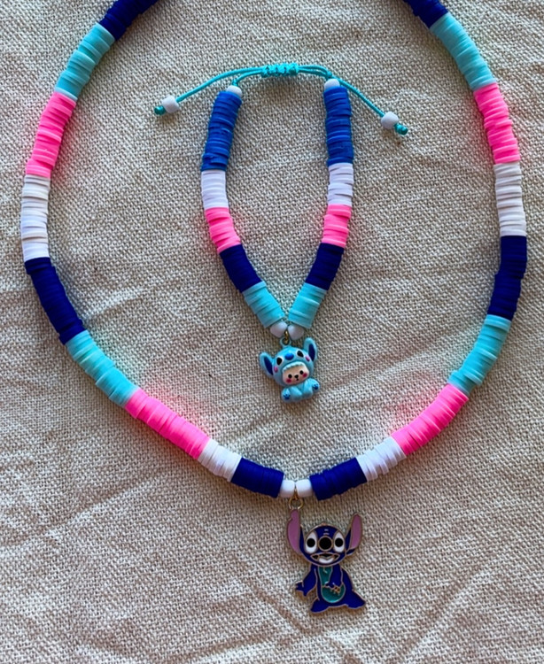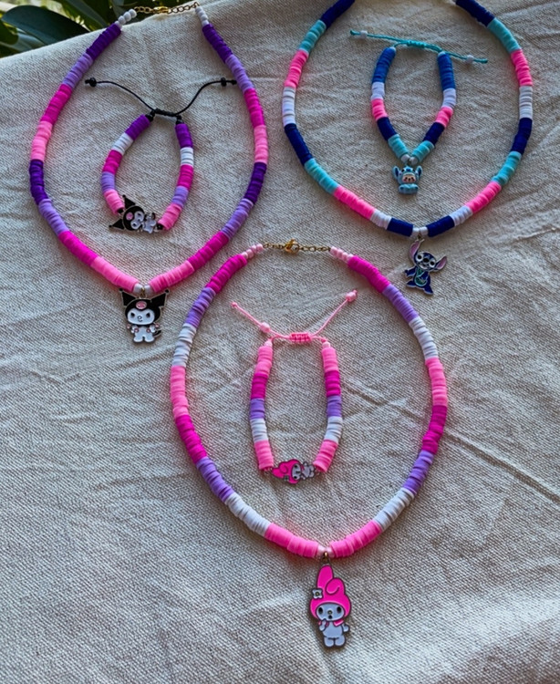 ست دستبند و گردنبند قابل در رنگ ها و طرح دلخواه شما مناسب برای گیفت تولد، گیفت کلاس اولی، گیفت نشانه حروف الفبا، جشن مهدکودک ها و تم تولد شما.کرومی ملودی و استیج