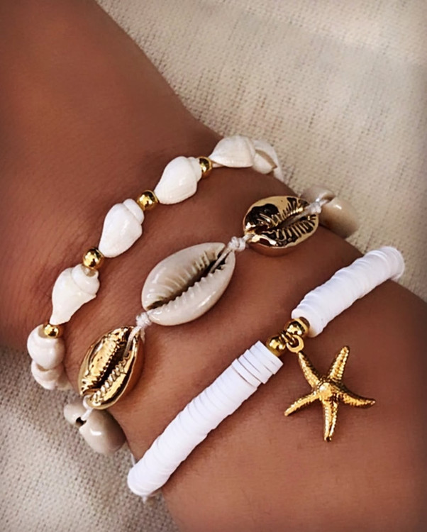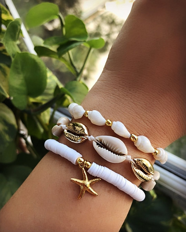 دستبند دخترانه صدف فیمو با پلاک ستاره دریایی